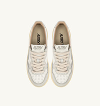 A new interpretation of our ultimate icon: the Autry Medalist. Striking the perfect balance between '80s tennis inspiration and a contemporary attitude, this women's sneakers elevates the versatile and distinctive design of the Medalist with unexpected volumes and bright new colorways. All the signature elements remain unchanged: it's crafted from supple white leather with laminated silver-tone details, perforated for breathability, and branded with the Autry logo on the side. The rubber platform sole gives the silhouette a literal lift while offering a comfortable, steady stride. SPECIFICATIONS: - Leather upper. - Perforated toe. - Flat cotton laces. - Label sewn on tongue. - Padded ankle collar. - Lined in leather and cotton terry. - 2 cm leather insole. - Rubber platform sole. - Height of sole: 4 cm. - Fabric dust bag. COMPOSITION: Upper Material: 100% cow leather Lining: 40% pigskin, 50% towel, 10% nylon Outsole: 100% rubber