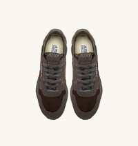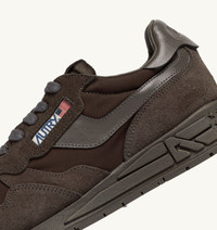 Innovative, light and extremely flexible, Reelwind Autry sneakers draw inspiration from the running world. The men’s style is crafted from a mix of suede and brown ripstop nylon, with side panels in leather. Note the monochromatic upper with tone-on-tone details and sole, with the side logo standing out to add that touch of authenticity. Designed for a dynamic lifestyle, it features a slender silhouette and performance construction that ensures maximum freedom of movement. The rubber sole with an embossed tread is personalized with the A-arrow that offers a graphic and modern reinterpretation of the logo. SPECIFICATIONS: - Upper in nylon, suede, and leather. - Flat laces in cotton. - Embroidery label detailing seamed at the tongue. - Padded collar. - Leather and cotton terry lining. - 2 cm-high raised sockliner in leather. - Color matching rubber sole. - Height of sole: 2.5-3.5 cm. - Personalized shoe bag in fabric. COMPOSITIONS: Upper: 20% leather, 25% suede, 55% nylon Lining: 40% leather, 50% cotton terry, 10% nylon Sole: 60% Phylon, 40% rubber