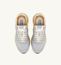 The Reelwind combines the technical qualities of high-performance running shoes with Autry's distinctive aesthetic codes and quality construction. This women's sneakers is crafted from reflective gray nylon, reinforced with suede and cracked leather inserts that form a beige panelled design. Lightweight and streamlined, it's complemented by a rubber and Phylon sole that cushions impact. SPECIFICATIONS: - Cracked leather, suede, leather and nylon upper. - Mesh toe. - Flat cotton laces. - Label sewn on tongue. - Padded ankle collar. - Pigskin, cotton terry and nylon lining. - 2 cm leather insole. - Rubber sole. - Height of sole: 2.5-3.5 cm. - Fabric dust bag. COMPOSITION: Upper Material: 10% cracked cow leather, 30% suede, 5% cow leather, 40% nylon, 15% mesh Lining:: 40% pigskin, 50% cotton terry, 10% nylon Outsole: 60% Phylon, 40% rubber
