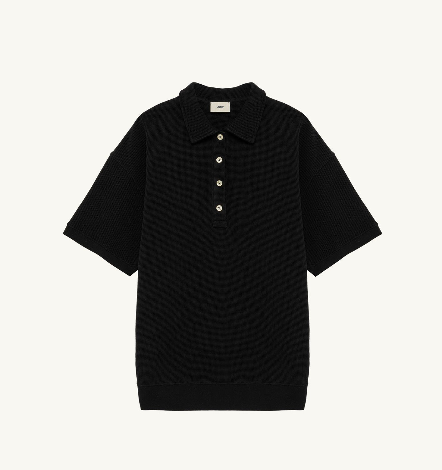 DETAILS: - 100% cotton - Polo opening with logo buttons - Cuffs and bottom ribs - Autry logo embroidered application on the back - Loose fit The model is 1.88 m tall and wears size L.
