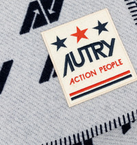 DETAILS: - All-over contrast logo - Solid blue lining. - Contrast patch with embroidery Autry Action People detailing - Exposed stitching along the profiles - Composition: 80% WOOL 20% POLYAMIDE - Size: 125 x 170 cm