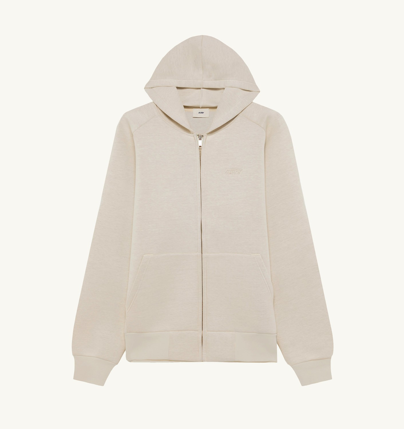 DETAILS: - 75% cotton, 25% polyurethane. - Unisex - Raglan sleeves - metal zipper - Autry logo debossed - Over fit - Embossed logo detailing. The model is 1.91 m tall and wears size L. The model is 1.79 m tall and wears size S.