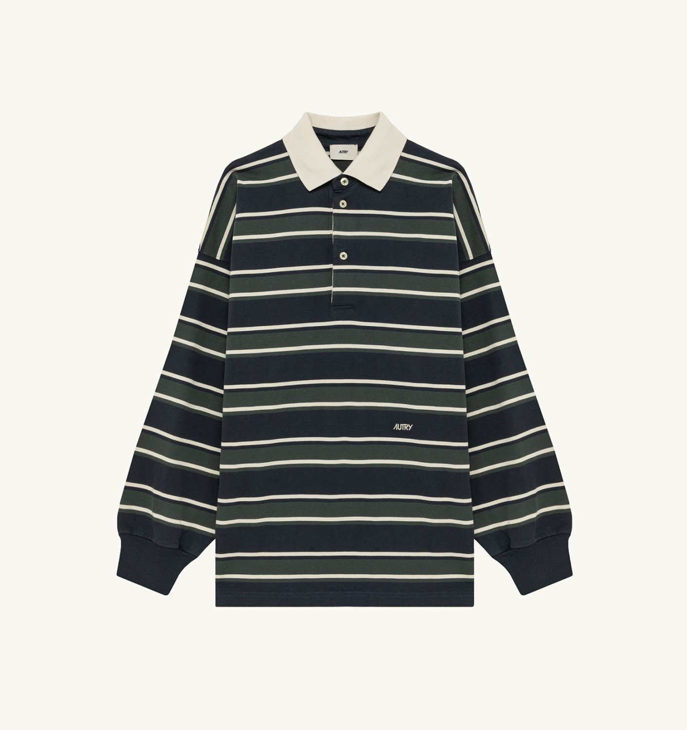 DETAILS: - 100% cotton - Unisex - rugby polo with logo buttons - Collar and cuffs ribs - Autry logo embroidery - Over fit The model is 1.75 m tall and wears size M. The model is 1.88 m tall and wears size L.