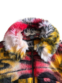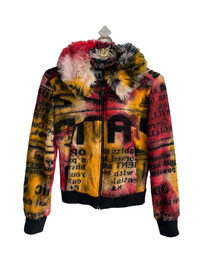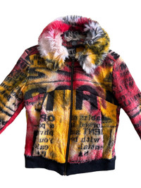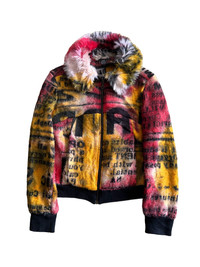 Y2K Diesel Style Lab 🇮🇹 Fur Neck Pop Art Jacquard Bomber
