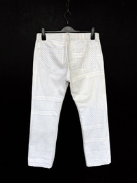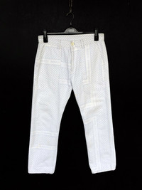 Really one of the RARE Garçons Collections! Well here they are beautiful checkered pattern creates a subtle print on the exterior with the cdg logo in reverse-great design that can enhance any everyday look Thick almost denim like Try and find me a cooler pair of white pants Few light marks here and there but nothing majorly noticeable when worn. Ready to Wear! I’m always willing to negotiate so message me with offers but please be PayPal ready. All sales are final, no returns. Ask me if you interested. Trusted seller with over 700 feedback! Buy with CONFIDENT! Measurements: Waist: 32 Inches.