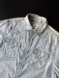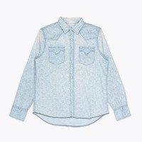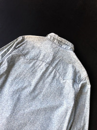 Needles Floral Western Shirt in light blue. 100% cotton. Slim fit. All over floral print. Dual pocket with flap and snap button closure on the front. Western front and back yoke. Snap button closure. Tonal seam stitching. Made in Japan. Used. Ready to wear! I’m always willing to negotiate so message me with offers but please be PayPal ready. All sales are final, no returns. Ask me if you interested. Trusted seller with over 1000 feedback! Buy with CONFIDENT! Measurements: Armpit: 21.5 Inches.