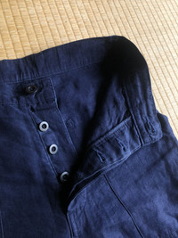 100% Linen. Size: 28 Condition: 9/10. Made in Japan. Will be shipped within 1-3 day of purchase! - If you like what I’m selling make sure to click "Follow Seller" next to my name! This will allow you to keep up with all of my new listings in the new feed under the "My Grails" tab.