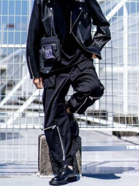 Super Baggy Bondage Zipper Black Drawstring Pants GUxŪ