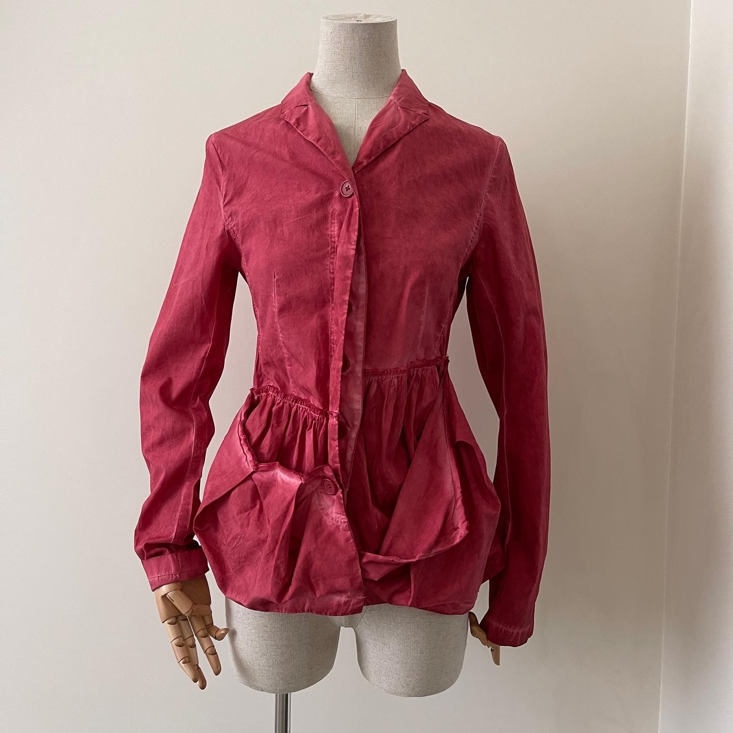 Unique new piece! One off red washed cotton. Tailor made with rose buttons… size S, 100% cotton, new without tags