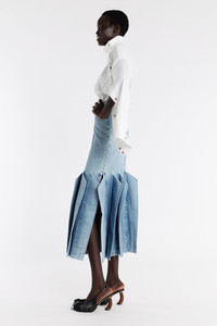 This skirt features a fitted shape from waist to thigh, flaring into sculpted volume through 3D hem panels. Side slits enhances movement, balancing structure with fluidity. Shown here with Asymmetric Collar Shirt White and Greta Fringe Black. Available in black. FIT & SIZE - Designed with a high waist. - True to size, we recommend choosing your regular size. - Model is 181 cm / 5'11" (bust: 74 cm / 29”, waist: 61 cm / 24”, hips: 87 cm / 34½”) and is wearing size FR 36. PRODUCT DETAILS - 100% Cotton. - Dry clean. - Made in Paraguay.
