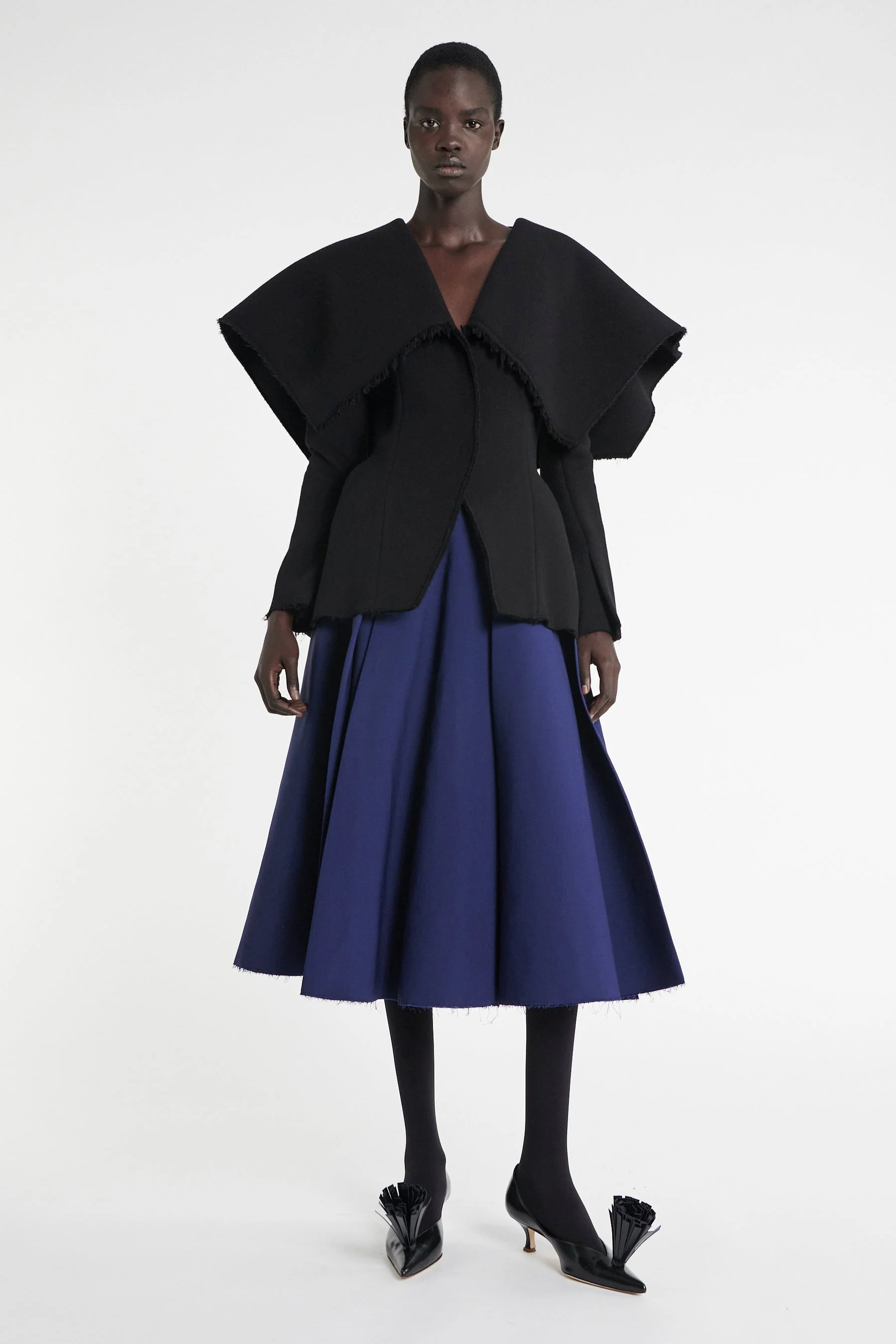 Crafted from pure wool, this blazer sets an oversized collar against a fitted body to create controlled volume. Raw-edge detailing adds a measured contrast to its tailored lines, while the V-neck fastening completes the piece with a clean, understated finish. Shown with Pleated Skirt Navy and Anki Ankle Boot Multicolour. Available in ecru. FIT & SIZE - Designed with a slim fit. - True to size, we recommend choosing your regular size. If between sizes, please size up. - Model is 181 cm / 5'11" (bust: 74 cm / 29”, waist: 61 cm / 24”, hips: 87 cm / 34½”) and is wearing a size FR 36. Lookbook model is 176 cm / 5'9" (bust: 77 cm / 30”, waist: 59 cm / 23”, hips: 86 cm / 34”) and is wearing a size FR 36. PRODUCT DETAILS - 100% Wool - Heavyweigh material. - Press studs. - Unlined. - Dry clean. - Made in Lithuania.