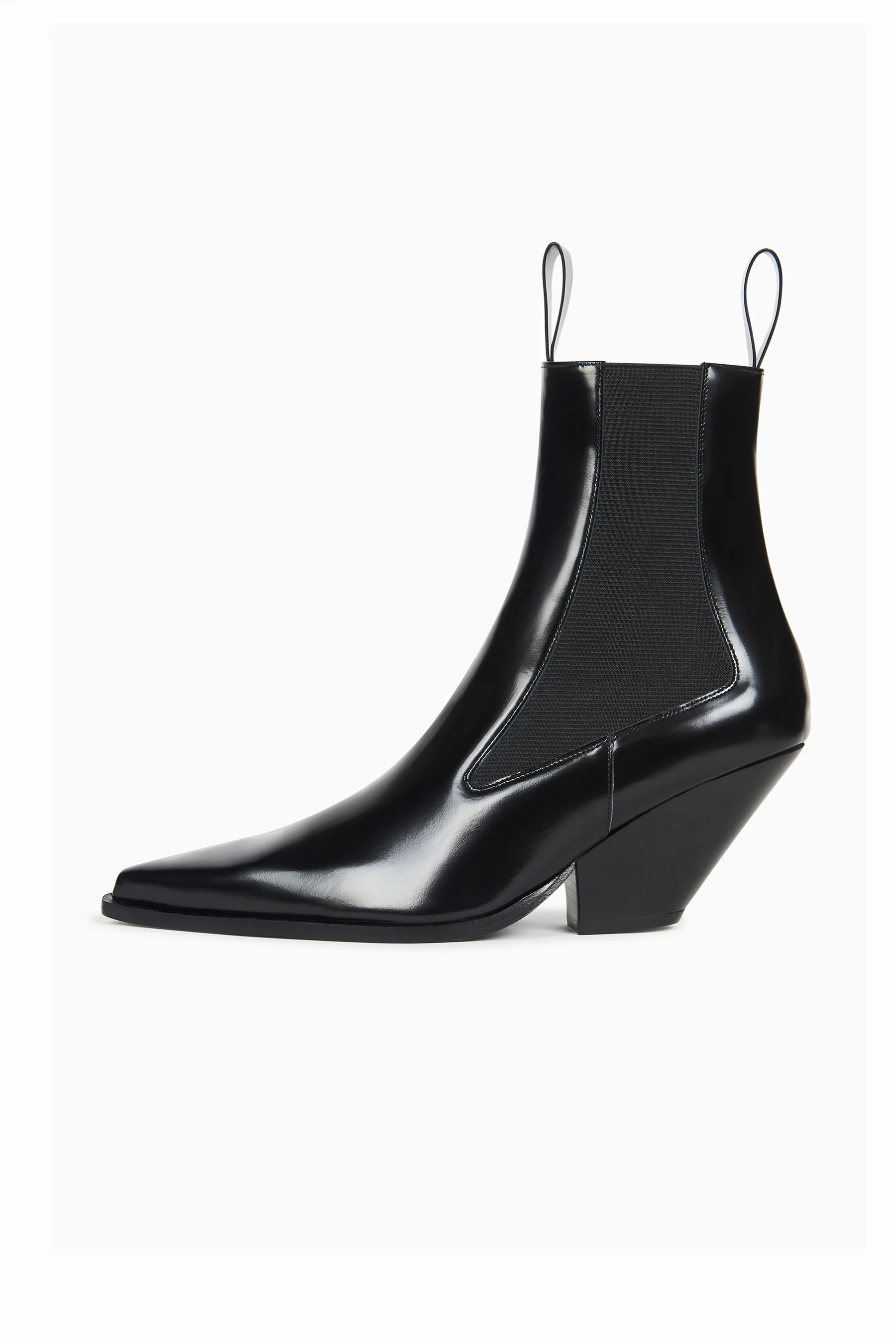 Crafted from supple leather, the Gabriel boots merge Western influences with a contemporary edge. The sleek silhouette is shaped with a subtly curved cowboy-inspired design, balancing refinement with directional character. FIT & SIZE - True to size, we recommend choosing your regular size. PRODUCT DETAILS - 70 mm heel. - Upper 100% Leather Insole 100% Leather Sole 100% Leather - Comes with a dust bag. - Made in Italy.