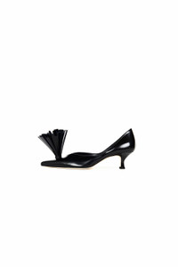 Crafted in smooth leather, this pump is distinguished by a sculptural vamp detail — a fan-shaped applique of layered strips that radiate upwards in dramatic form. A pointed toe sharpens the silhouette, while the curved kitten heel offers subtle height with ease. Also available in beige and burgundy. FIT & SIZE - This style runs a half-size large. We recommend ordering a half-size down from your usual size for the best fit. PRODUCT DETAILS - 50mm heel. - 100% Nappa Leather 100% Leather Lining - Comes with a dust bag. - Made in Italy.