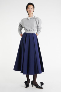Cut from midweight GOTS-certified cotton jersey with a fleece-lined reverse, this cropped sweatshirt reconfigures casual elegance. Featuring an off-centre neckline that shifts the point collar to one side, it drapes into the shoulder seam for an asymmetric finish and relaxed silhouette. Shown here with Pleated Skirt Navy and Lea Black. Available in blue. FIT & SIZE - Designed with a relaxed fit. - True to size, we recommend choosing your regular size. - Model is 177 cm / 5'9" (bust: 75 cm / 29”, waist: 60 cm / 23”, hips: 88 cm / 34”) and is wearing a size XS. PRODUCT DETAILS - 100% Organic Cotton - Midweight strechy material. - Pull-on design. - Button closure on the collar. - Unlined. - Dry clean. - Made in Portugal.