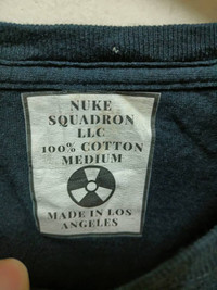 Please read all the description caferully before make a purchase. If you want more details about that item, feel free to ask...tq Brand : Nuke Squadron LLC Made in Los Angeles Size on tag : M Actual Measurement : armpit 20 inches length top to bottom 28 nches Colour : Black Meterials : 100% cotton Condition : Still in good conditions as a used item... Please refer picture carefully...tq Accept Payment : PayPal onlyn All item will be shipped whitin 1-3 Business Day after receiving cleared payment. We are using DHL Express with tracking number. It will be taking 2-5 working days to deliver. Please leave your phone number during purchasing. Phone number required for DHL Express ( very important ).
