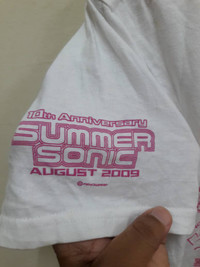 Please read all the description caferully before make a purchase. If you want more details about that item, feel free to ask...tq Brand : Summer Sonic 2009 band tour Made in China Size on tag M Actual Measurement : armpit 21 inches length top to bottom 25 inches Colour : white Meterials : 100% cotton Condition : Still in good conditions as a used item... Please refer picture carefully...tq Accept Payment : PayPal only All item will be shipped whitin 1-3 Business Day after receiving cleared payment. We are using DHL Express with tracking number. It will be taking 2-5 working days to deliver. Please leave your phone number during purchasing. Phone number required for DHL Express ( very important ).