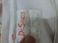 Please read all the description caferully before make a purchase. If you want more details about that item, feel free to ask...tq Brand : Dr. Seuss Made in USA Size on tag : L junior Actual Measurement : armpit 24.5 inches length top to bottom 29 inches Colour : white Meterials : 100% cotton Condition : Have a several yellow stains but still in good conditions as a used item... Please refer picture carefully...tq Accept Payment : PayPal onlyn All item will be shipped whitin 1-3 Business Day after receiving cleared payment. We are using DHL Express with tracking number. It will be taking 2-5 working days to deliver. Please leave your phone number during purchasing. Phone number required for DHL Express ( very important ).