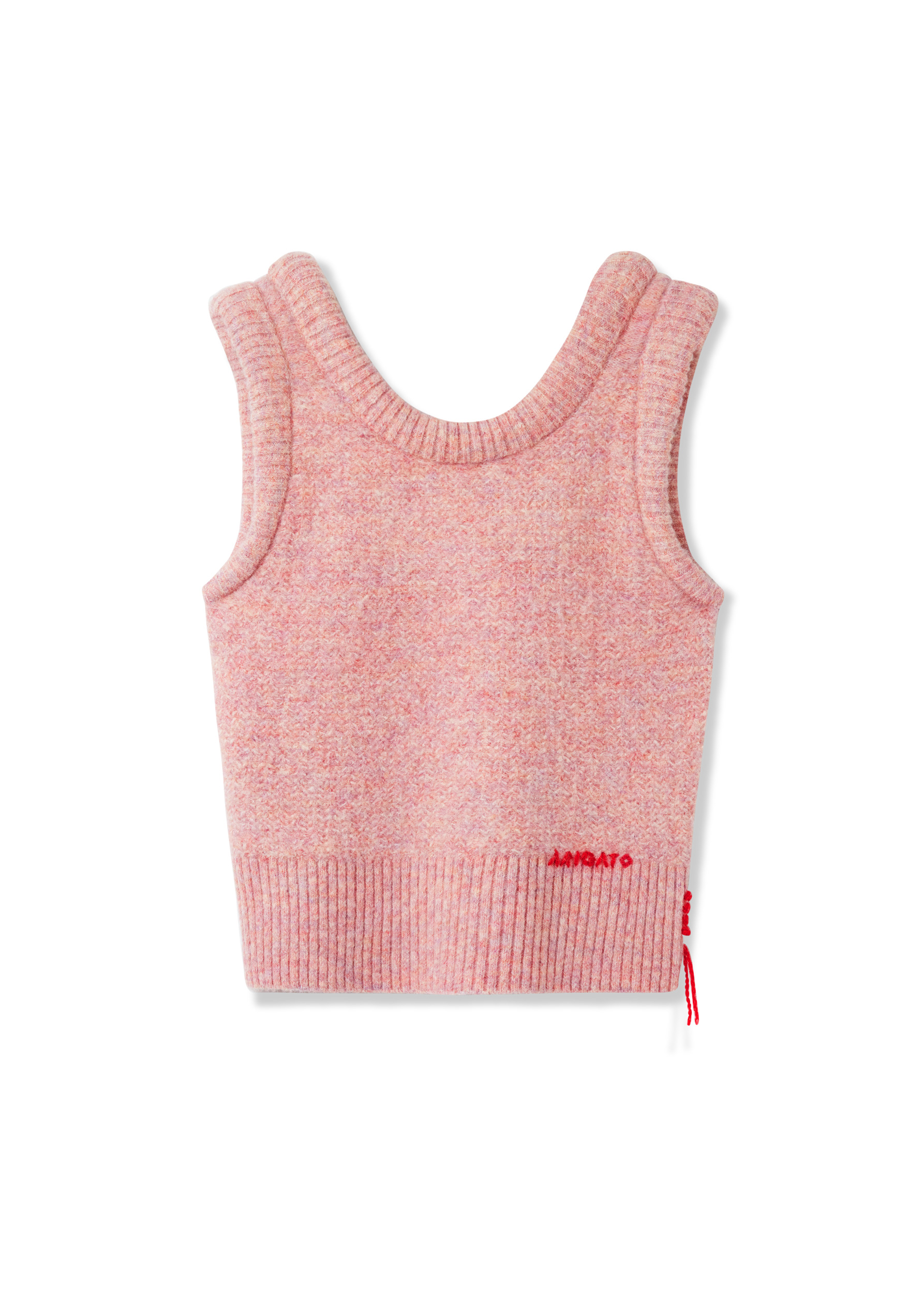The Ana vest is knitted with touches of alpaca and wool for a soft, fuzzy handle. The padded neckline and armholes create subtle volume in the slim silhouette, while looped hand-stitching finishes this piece. Due to the natural characteristics of this material, small fibers may shed during wear. Handle with care to preserve the original appearance of this piece for as long as possible. The model is 180 cm / 5’11” ft and wears a size S. Style Details - 15% Alpaca, 20% Wool, 20% Nylon, 18% Polyester, 25% Acrylic, 2% Spandex - Slim fit - Padded ribbed neckline and armhole - Hand embroidered loop stitching detail - Hand embroidered 'Arigato' logo at bottom hem - Can be worn back to front - Crafted in China - Care instructions: Hand wash cold