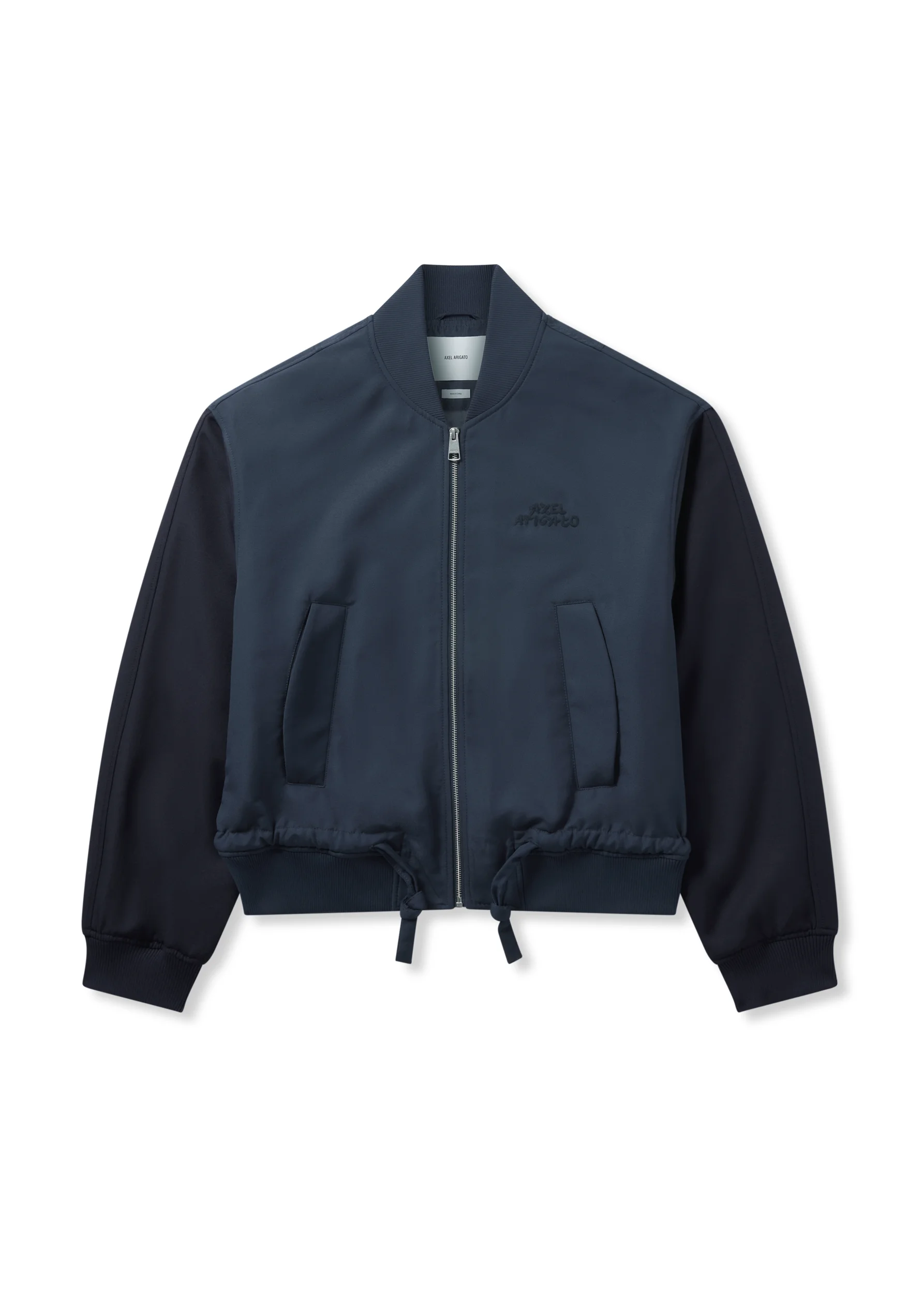 The Archer Bomber Jacket is designed with a regular fit and light padding through the body and sleeves for added warmth. It features a front zip closure, ribbed cuffs, hem, and collar, plus side pockets with press snap closures. Finished with a seasonal chest embroidery, color-blocked sleeves, and a branded zip puller. The model is 185 cm / 6'1 ft and wears a size M. Style Details - 100% Polyester - Regular Fit - Front zip closure - Light padding throughout body and sleeve - Branded zip puller - Side pockets with press snap closure - Rib cuff, hem and collar - Seasonal Chest embroidery - Colour blocked sleeves - Crafted in China - Care instructions: Dry Clean Only