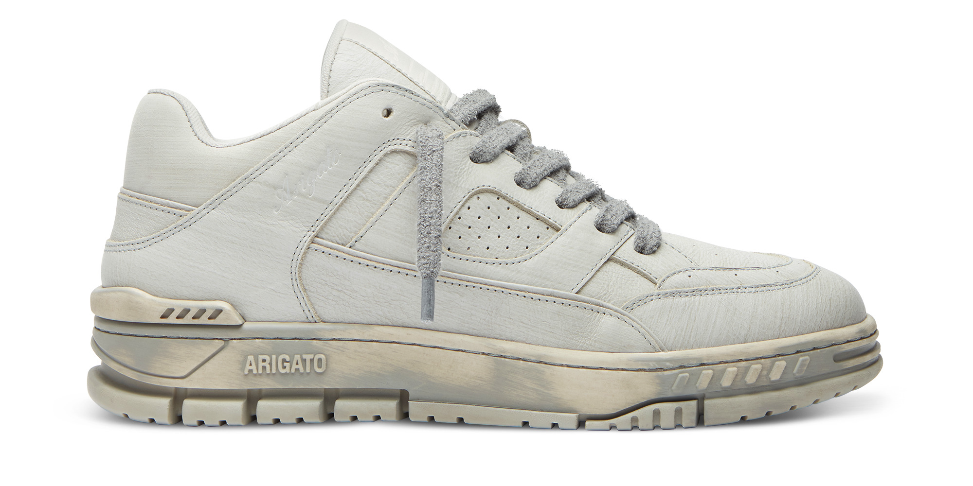The Area Lo sneaker pays homage to ‘90s basketball styles. Handcrafted from premium leather, it has paneled uppers finished with perforations and heel spoilers. Style Details - Upper: 100% Leather - Lining: 90% Recycled Polyester, 10% PU - Sole: 100% TR - Height measures 37mm - European sizing - Debossed logo stamp - Branded woven label - Flat textured laces - Handcrafted in Portugal