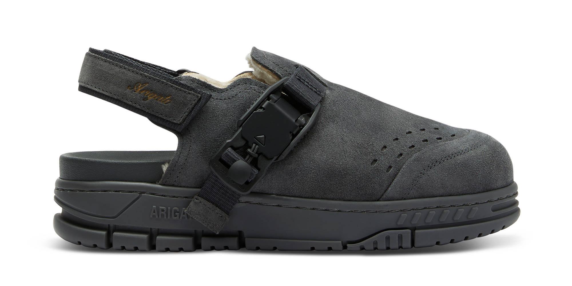 Just like the Area sneaker, the eponymous Area sandal pays homage to ‘90s basketball footwear. Handcrafted from shearling-lined suede, it’s fitted with a webbing slingback strap and custom buckle for a utilitarian finish. Style Details - Upper: 100% Suede - Lining: 95% Shearling Leather + 5% PU - Sole: 100% TR; height measures 37mm / 1.45" - European Sizing - Adjustable clip fastening - Adjustable velco back strap - Handmade in Portugal