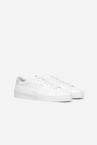The Court sneaker is handmade from LWG-certified leather and suede, and backed with a comfortable microfiber and recycled polyester lining. Set on thick rubber soles that are partly recycled, the minimal silhouette is finished with a contrasting heel tab, discreet gold logo, and perforations. Style Details - Upper: 93% leather + 7% suede - Lining: 77% leather + 14% microfiber + 9% recycled polyester - Sole: 80% rubber + 20% recycled rubber, height measuring - European Sizing - Logo stamp in metallic gold - Flat cotton laces - Recycled polyester branded dustbag - Responsible packaging - Handmade in Portugal