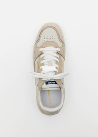 The Dice Lo Sneaker presents a modern staple with a vintage inspired design. The upper combines nubuck and Italian leather, set on a textured branded rubber sole made using partly recycled rubber. The lining is responsibly produced using recycled PET bottles and recycled plastic. The surface of the vintage effect leather will wear off and expose the natural base leather for a worn effect. Rubbing while cleaning will accentuate the worn effect. If this is not desired, clean gently with dabbing movements to avoid abrasion on the surface.
