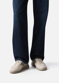 The Genesis Neo Suede Runner is an evolution of one of our signature sneaker models – the original vintage-inspired silhouette has been reworked for a sleek, sculpted finish. This lightweight pair is handcrafted from panels of suede and textile, and stamped with gold branding. Style Details - Upper: 96% Leather, 4% Polyester - Lining: 100% Polyester - Sole: 100% Rubber - Height measure 42mm - European sizing - Piping detail - Logo stamp in meatllic gold - Round flecked laces - Handmade in Vietnam