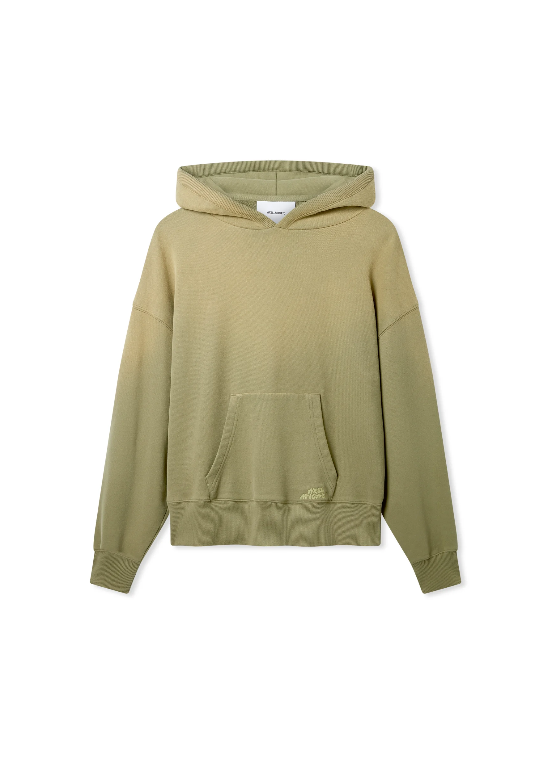 The Grip hoodie is crafted from 100% organic cotton, featuring a loopback fleece fabric with a peached surface for a soft touch. Distinctive rib detailing at the hood, cuffs, and hem complements the bubble 'Axel Arigato' embroidery on the pouch pocket. This piece has undergone a specialized spray technique that creates a unique fading effect, ensuring that each hoodie is one-of-a-kind and will continue to develop character with wear. The model is 185 cm / 6'1 ft and wears a size M. Style Details - 100% Organic Cotton - Slim Fit - Loopback fleece fabric with peached surface - Rib detail at hood, cuff & hem - Spray technique - Bubble 'Axel Arigato' embroidery on pouch pocket - Crafted in Portugal - Care instructions: 30 degrees gentle cycle, wash with similar colours