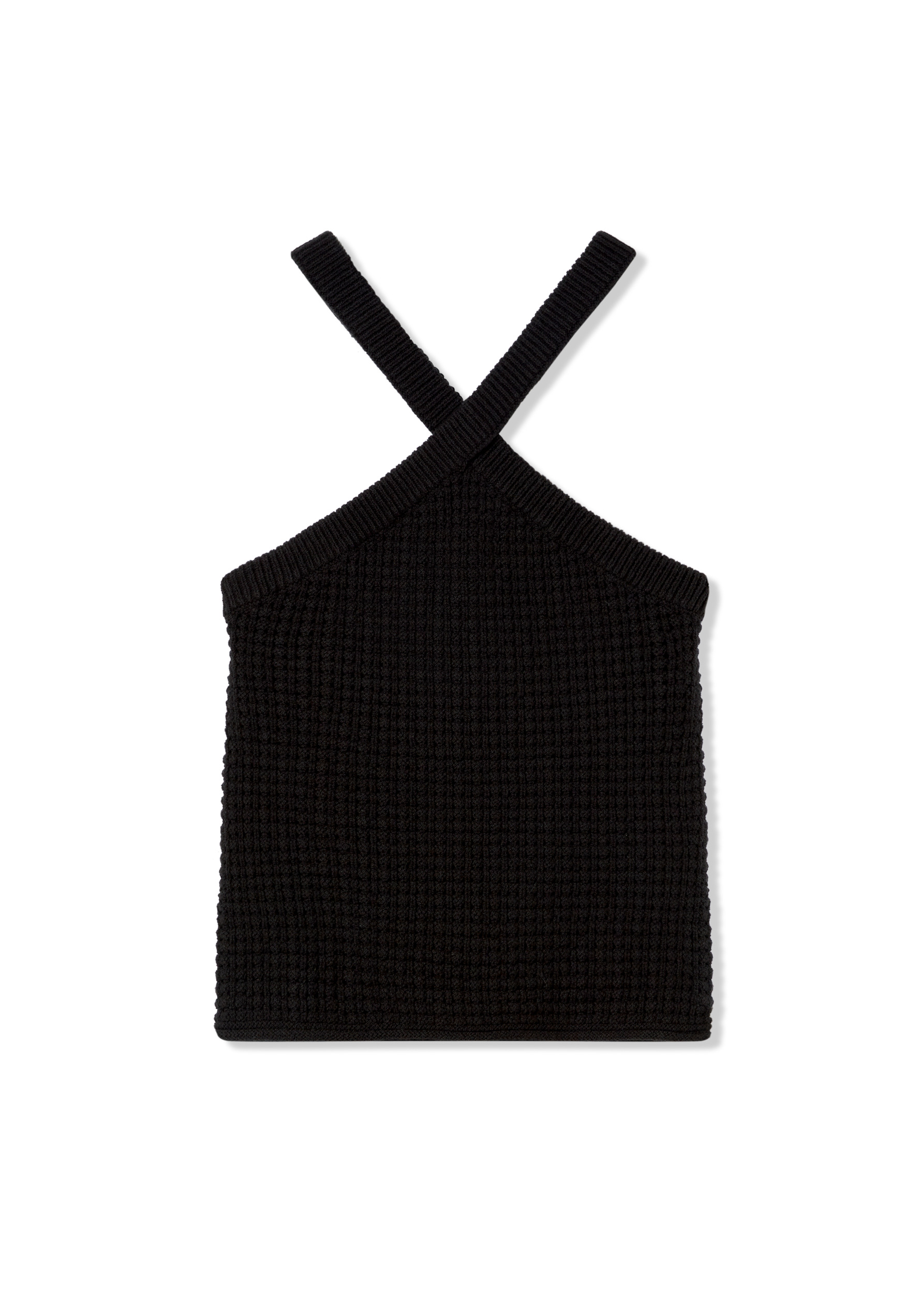 The Halter tank is crocheted from a soft cotton-blend and features slim straps that crossover at the back. Our seasonal branded label finishes this piece. The model is 180 cm / 5”11 ft and wears a size S. Style Details - 76% Cotton 20%Polyamide 4% Elastane - Regular fit - Open knitted crochet knit - Halter neck - Open back - Seasonal branded label - Crafted in China - Care instructions:Hand wash cold
