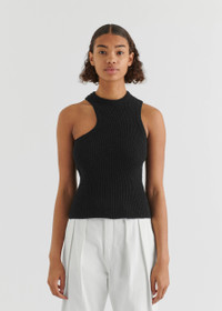 The Scoop tank top is crafted from a stretch cotton-blend with a textured bouclé-effect finish. Unique asymmetric straps finish this piece. The model is 178cm / 5'10 ft and wears a size S.