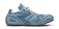 The Slow Runner’s layered, low-profile silhouette embodies the ethos of deconstruction and innovation. A seamless blend of old and new, the upper reimagines the iconic Marathon Runner through familiar, intricate panels of Italian denim with a tactile denim underlay. This model is set on a sleek, flat outsole with a unique knit-inspired finish that echoes design elements from our ready-to-wear collections. Style Details - Upper: 100% Cotton - Lining: 85% Recycled Polyester, 15% Microfibre - Sole: 100% Rubber - Height measures 7mm - Italian Denim - European Sizing - Round laces - Debossed branding on tongue - Handcrafted in Portugal
