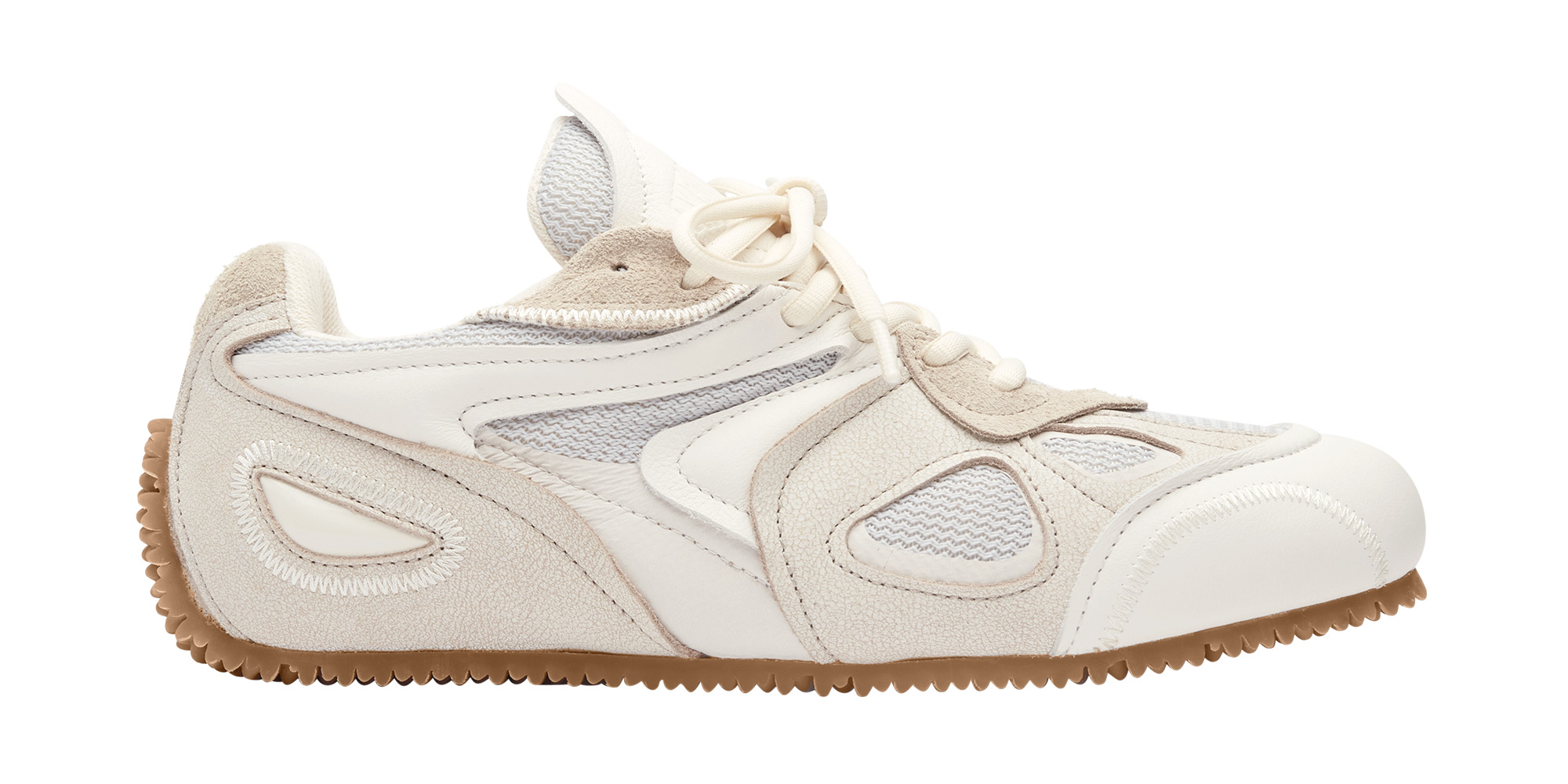 The Slow Runner’s layered, low-profile silhouette embodies the ethos of deconstruction and innovation. A seamless blend of old and new, the upper reimagines the iconic Marathon Runner through familiar, intricate panels of leather, suede and nubuck. This model is set on a sleek, flat outsole with a unique knit-inspired finish that echoes design elements from our ready-to-wear collections. Style Details - Upper: 40% Leather, 33% Suede, 27% Nubuck - Lining: 85% Recycled Polyester, 15% Microfibre - Sole: 100% Rubber - Height measures 7mm - European Sizing - Round laces - Debrossed branding on tongue - Handcrafted in Portugal