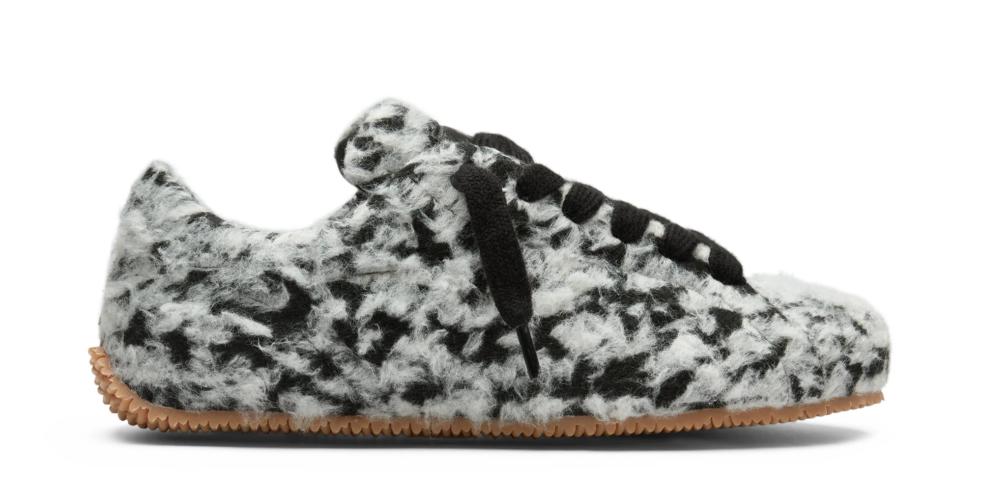 The Tact Runner’s low-profile silhouette is distinctly bold – blending a minimalist design approach with experimental materials. Trimmed with leather, it’s handcrafted in Portugal from Italian suede that’s brushed for a uniquely fluffy texture. Handdrawn chain-stitch embroidery subtly details the tongue, while the rubber sole is uniquely molded to resemble knitwear. Style Details - Upper: 100% Polyester - Lining: 67% Leather, 33% Recycled Polyester - Sole: 100% Rubber - Height measures 7mm - European Sizing - Debossed bubble branding patch - Wool laces - Handmade in Portugal