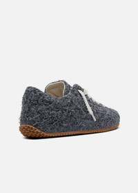 The Tact Runner’s low-profile silhouette is distinctly bold – blending a minimalist design approach with experimental materials. Trimmed with leather, it’s handcrafted in Portugal from Italian denim that’s artfully distressed for a uniquely fluffy texture. Handdrawn chain-stitch embroidery subtly details the tongue, while the rubber sole is uniquely molded to resemble knitwear. To preserve the shape, appearance and quality of the Tact Runner’s minimal silhouette, always unlace your sneakers and use a shoe horn when putting them on and taking them off. Style Details - Upper: 85% Cotton, 15% Leather - Lining: 67% Leather, 33% Recycled Polyester - Sole: 100% Rubber - Height Measures 7mm - European Sizing - Italian Denim - Flat textured - Hand drawn chain stitch embroidered branding - Handcrafted in Portugal