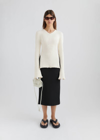 The Tube top is crafted from a cotton-blend with a textured bouclé-effect finish. Adjustable ties detail the open back. The model is 173cm / 5'8 ft wears a size S.