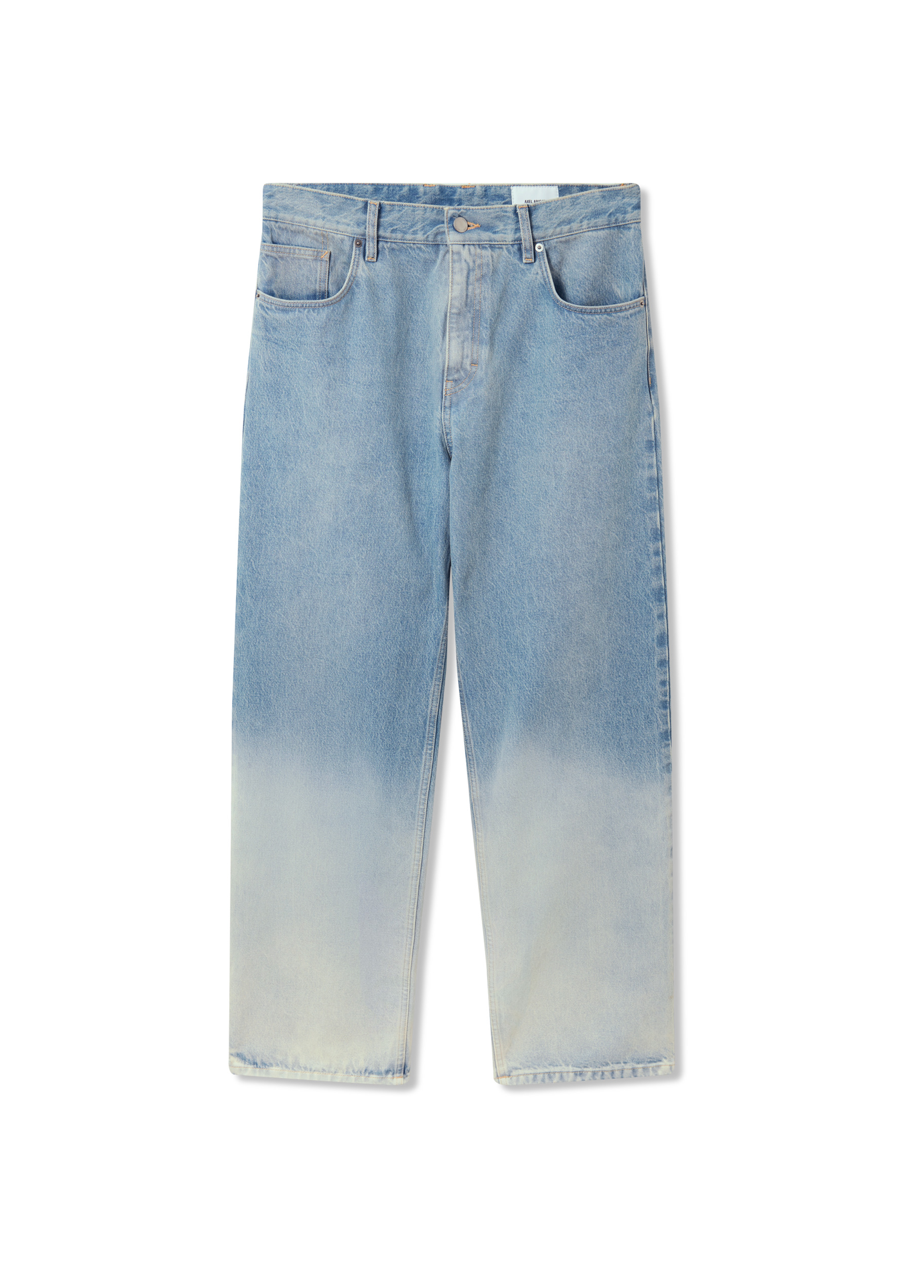 Made in Italy, the Zine Fade jeans are cut from cotton-denim that’s faded through the leg. Hand-embroidered branding finishes this relaxed pair. This item is made from carefully selected denim that’s finished to achieve a specific look. The fade out is created using a specialized spray technique, which causes the color to fade. As a result, all pieces are unique and include small variations in dimension and color. Due to the nature of the dyeing process, some dye may transfer or rub off on to lighter color garments or upholstery. Style Details - 100% Cotton - Relaxed Fit - Arigato brand yellow patch at back waistband - Hand embroidered 'Arigato' embroidery at back pocket - Fade out at lower leg - Classic 5 pocket jeans - Branded metal buttons and rivets - Crafted in Italy - Care instructions: 30 degrees gentle cycle, wash with similar colours. - Wash separately and inside out. - Iron low and inside out.