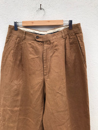 CODE:SD KINDLY PLEASE READ ALL THE DESCRIPTION BEFORE PURCHASING!!!..DON'T HESITATE TO ASK ANY QUESTION: Please leave me your contact phone number, as the shipping company always need the phone number to help delivering. Metarial: 100% Linen Tag Size:-33 MADE IN Italy Kindly see the actual measurements: (All Measurements Were Taken Lying flat) WAIST :- 33”inches LENGTH (OUTSEAM ) :- 41”inches ( INSEAM ) :-30”inches THIGH :-28” Inches FRONT RISE:-15”Inches LEG OPENING :- 17” inches CONDITIONS : GOOD CONDITIONS have a little sun fafed Condition as per picture Kindly see all pictures Thank you so much for your visit WE ARE USING EXPRESS SHIPPING, IT TAKES 3-5 DAYS ONLY TO ARRIVE. PLEASE LEAVE YOUR PHONE NUMBER ON THE NOTE WHILE MAKE A PURCHASE AND PLEASE MAKE SURE YOUR ADDRESS IS COMPLETE AND CORRECT Etc: # Don't Worry About Customs Tax or Fees. I usually Declare all Items as 'Gift' & Declare Value of Item Lower than Original Price. # All Items are Sold "AS IS" so Please be Sure to Read The Entire Description and Look at All The Pictures. # Any Question and More Details Please Don't Hesitate to Contact Me ATTENTION: Please pay close attention to measurements provided. Do not rely on tag size as pre-worn items may have been altered, stretched or shrunk & vintage sizes do not directly translate the modern sizes.The best way to ensure a correct fit is to compare our measurements with the measurements of a similar item that you know fits you well.Please enlarge the photos for clearer image