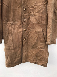 KINDLY PLEASE READ ALL THE DESCRIPTION BEFORE PURCHASING!!!..DON'T HESITATE TO ASK ANY QUESTION: Please leave me your contact phone number, as the shipping company always need the phone number to help delivering. Tag Size:-L Material: Leather Made In Spain Kindly see the actual measurements: (All Measurements Were Taken Lying flat) underarm to underarm (across front) : 22inches top to bottom length (from top collar fold) :39Inches Shoulder to Shoulder:18 inches Shoulder to Wrist:24 inches CONDITIONS : GOOD CONDITIONS as per picture Kindly see all pictures Thank you so much for your visit WE ARE USING EXPRESS SHIPPING, IT TAKES 3-5 DAYS ONLY TO ARRIVE. PLEASE LEAVE YOUR PHONE NUMBER ON THE NOTE WHILE MAKE A PURCHASE AND PLEASE MAKE SURE YOUR ADDRESS IS COMPLETE AND CORRECT Etc: # Don't Worry About Customs Tax or Fees. I usually Declare all Items as 'Gift' & Declare Value of Item Lower than Original Price. # All Items are Sold "AS IS" so Please be Sure to Read The Entire Description and Look at All The Pictures. # Any Question and More Details Please Don't Hesitate to Contact Me ATTENTION: Please pay close attention to measurements provided. Do not rely on tag size as pre-worn items may have been altered, stretched or shrunk & vintage sizes do not directly translate the modern sizes.The best way to ensure a correct fit is to compare our measurements with the measurements of a similar item that you know fits you well.Please enlarge the photos for clearer image