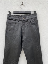 KINDLY PLEASE READ ALL THE DESCRIPTION BEFORE PURCHASING!!!..DON'T HESITATE TO ASK ANY QUESTION: Please leave me your contact phone number, as the shipping company always need the phone number to help delivering. Metarial: -100% Leather Tag Size:-29 MADE IN Pakistan Kindly see the actual measurements: (All Measurements Were Taken Lying flat) WAIST :- 13”(26)inches LENGTH (OUTSEAM ) :- 39inches ( INSEAM ) :-29inches THIGH :-10”(20)Inches FRONT RISE:-13Inches LEG OPENING :- 8”(16) inches GOOD USED CONDITIONS as per picture Kindly see all pictures Thank you so much for your visit WE ARE USING EXPRESS SHIPPING, IT TAKES 3-5 DAYS ONLY TO ARRIVE. PLEASE LEAVE YOUR PHONE NUMBER ON THE NOTE WHILE MAKE A PURCHASE AND PLEASE MAKE SURE YOUR ADDRESS IS COMPLETE AND CORRECT Etc: # Don't Worry About Customs Tax or Fees. I usually Declare all Items as 'Gift' & Declare Value of Item Lower than Original Price. # All Items are Sold "AS IS" so Please be Sure to Read The Entire Description and Look at All The Pictures. # Any Question and More Details Please Don't Hesitate to Contact Me ATTENTION: Please pay close attention to measurements provided. Do not rely on tag size as pre-worn items may have been altered, stretched or shrunk & vintage sizes do not directly translate the modern sizes.The best way to ensure a correct fit is to compare our measurements with the measurements of a similar item that you know fits you well.Please enlarge the photos for clearer image