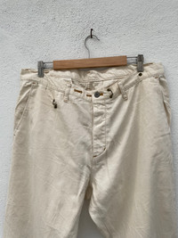 KINDLY PLEASE READ ALL THE DESCRIPTION BEFORE PURCHASING!!!..DON'T HESITATE TO ASK ANY QUESTION: Please leave me your contact phone number, as the shipping company always need the phone number to help delivering. Metarial: -100%Cotton Tag Size:M MADE IN Japan Kindly see the actual measurements: (All Measurements Were Taken Lying flat) WAIST :- 38inches LENGTH (OUTSEAM ) :- 40inches ( INSEAM ) :-29inches THIGH :-30Inches FRONT RISE:-15Inches LEG OPENING :- 15 inches GOOD USED CONDITIONS Kindly see all pictures Thank you so much for your visit WE ARE USING EXPRESS SHIPPING, IT TAKES 3-9DAYS ONLY TO ARRIVE. PLEASE LEAVE YOUR PHONE NUMBER ON THE NOTE WHILE MAKE A PURCHASE AND PLEASE MAKE SURE YOUR ADDRESS IS COMPLETE AND CORRECT Etc: # Don't Worry About Customs Tax or Fees. I usually Declare all Items as 'Gift' & Declare Value of Item Lower than Original Price. # All Items are Sold "AS IS" so Please be Sure to Read The Entire Description and Look at All The Pictures. # Any Question and More Details Please Don't Hesitate to Contact Me ATTENTION: Please pay close attention to measurements provided. Do not rely on tag size as pre-worn items may have been altered, stretched or shrunk & vintage sizes do not directly translate the modern sizes.The best way to ensure a correct fit is to compare our measurements with the measurements of a similar item that you know fits you well.Please enlarge the photos for clearer image