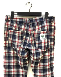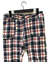 KINDLY PLEASE READ ALL THE DESCRIPTION BEFORE PURCHASING!!!..DON'T HESITATE TO ASK ANY QUESTION: Made In Japan Stripe Ballon Red Tartan Checkered Pants Please leave me your contact phone number, as the shipping company always need the phone number to help delivering. MATERIAL:100%COTTON Tag Size:-None Recommended 29 MADE IN JAPAN Kindly see the actual measurements: (All Measurements Were Taken Lying flat) WAIST :- 31inches LENGTH (OUTSEAM ) :- 40 inches ( INSEAM ) :-32.5 inches THIGH :-22Inches FRONT RISE:-9.5Inches LEG OPENING :- 15 inches CONDITIONS : GOOD CONDITIONS Kindly see all pictures Thank you so much for your visit WE ARE USING EXPRESS SHIPPING, IT TAKES 3-5 DAYS ONLY TO ARRIVE. PLEASE LEAVE YOUR PHONE NUMBER ON THE NOTE WHILE MAKE A PURCHASE AND PLEASE MAKE SURE YOUR ADDRESS IS COMPLETE AND CORRECT Etc: # Don't Worry About Customs Tax or Fees. I usually Declare all Items as 'Gift' & Declare Value of Item Lower than Original Price. # All Items are Sold "AS IS" so Please be Sure to Read The Entire Description and Look at All The Pictures. # Any Question and More Details Please Don't Hesitate to Contact Me ATTENTION: Please pay close attention to measurements provided. Do not rely on tag size as pre-worn items may have been altered, stretched or shrunk & vintage sizes do not directly translate the modern sizes.The best way to ensure a correct fit is to compare our measurements with the measurements of a similar item that you know fits you well.Please enlarge the photos for clearer image