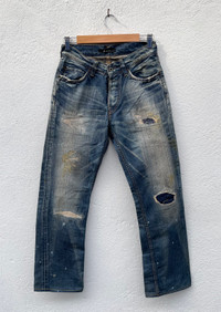 KINDLY PLEASE READ ALL THE DESCRIPTION BEFORE PURCHASING!!!..DON'T HESITATE TO ASK ANY QUESTION: Please leave me your contact phone number, as the shipping company always need the phone number to help delivering. Metarial: Cotton Tag Size:-28 MADE IN Japan Kindly see the actual measurements: (All Measurements Were Taken Lying flat) WAIST :- 28”inches LENGTH (OUTSEAM ) :- 40”inches ( INSEAM ) :-29”inches THIGH :-22” Inches FRONT RISE:-13”Inches LEG OPENING :- 17” inches CONDITIONS : GOOD CONDITIONS Condition as per picture Kindly see all pictures Thank you so much for your visit WE ARE USING EXPRESS SHIPPING, IT TAKES 3-9DAYS ONLY TO ARRIVE. PLEASE LEAVE YOUR PHONE NUMBER ON THE NOTE WHILE MAKE A PURCHASE AND PLEASE MAKE SURE YOUR ADDRESS IS COMPLETE AND CORRECT Etc: # Don't Worry About Customs Tax or Fees. I usually Declare all Items as 'Gift' & Declare Value of Item Lower than Original Price. # All Items are Sold "AS IS" so Please be Sure to Read The Entire Description and Look at All The Pictures. # Any Question and More Details Please Don't Hesitate to Contact Me ATTENTION: Please pay close attention to measurements provided. Do not rely on tag size as pre-worn items may have been altered, stretched or shrunk & vintage sizes do not directly translate the modern sizes.The best way to ensure a correct fit is to compare our measurements with the measurements of a similar item that you know fits you well.Please enlarge the photos for clearer image