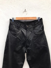 KINDLY PLEASE READ ALL THE DESCRIPTION BEFORE PURCHASING!!!..DON'T HESITATE TO ASK ANY QUESTION: Please leave me your contact phone number, as the shipping company always need the phone number to help delivering. Metarial: -COW LEATHER Tag Size:-LL MADE IN JAPAN ALREADY DRY CLEANING Kindly see the actual measurements: (All Measurements Were Taken Lying flat) WAIST :- 29inches LENGTH (OUTSEAM ) :- 44inches ( INSEAM ) :-33inches THIGH :-23 Inches FRONT RISE:-13Inches LEG OPENING :- 24 inches CONDITIONS : GOOD CONDITIONS(USED CONDITIONS) Kindly see all pictures Thank you so much for your visit WE ARE USING EXPRESS SHIPPING, IT TAKES 3-5 DAYS ONLY TO ARRIVE. PLEASE LEAVE YOUR PHONE NUMBER ON THE NOTE WHILE MAKE A PURCHASE AND PLEASE MAKE SURE YOUR ADDRESS IS COMPLETE AND CORRECT Etc: # Don't Worry About Customs Tax or Fees. I usually Declare all Items as 'Gift' & Declare Value of Item Lower than Original Price. # All Items are Sold "AS IS" so Please be Sure to Read The Entire Description and Look at All The Pictures. # Any Question and More Details Please Don't Hesitate to Contact Me ATTENTION: Please pay close attention to measurements provided. Do not rely on tag size as pre-worn items may have been altered, stretched or shrunk & vintage sizes do not directly translate the modern sizes.The best way to ensure a correct fit is to compare our measurements with the measurements of a similar item that you know fits you well.Please enlarge the photos for clearer image
