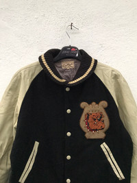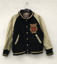 KINDLY PLEASE READ ALL THE DESCRIPTION BEFORE PURCHASING!!!..DON'T HESITATE TO ASK ANY QUESTION: TAKEO KIKUCI LEATHER SLEEVE VARSITY JACKETS Please leave me your contact phone number, as the shipping company always need the phone number to help delivering. Tag Size:3 Material:Wool Leather Polyester Kindly see the actual measurements: (All Measurements Were Taken Lying flat) underarm to underarm (across front) : 25inches top to bottom length (from top collar fold) :26Inches Shoulder to Shoulder: Shoulder to Wrist: CONDITIONS : Good used CONDITIONS Kindly see all pictures Thank you so much for your visit WE ARE USING EXPRESS SHIPPING, IT TAKES 3-5 DAYS ONLY TO ARRIVE. PLEASE LEAVE YOUR PHONE NUMBER ON THE NOTE WHILE MAKE A PURCHASE AND PLEASE MAKE SURE YOUR ADDRESS IS COMPLETE AND CORRECT Etc: # Don't Worry About Customs Tax or Fees. I usually Declare all Items as 'Gift' & Declare Value of Item Lower than Original Price. # All Items are Sold "AS IS" so Please be Sure to Read The Entire Description and Look at All The Pictures. # Any Question and More Details Please Don't Hesitate to Contact Me ATTENTION: Please pay close attention to measurements provided. Do not rely on tag size as pre-worn items may have been altered, stretched or shrunk & vintage sizes do not directly translate the modern sizes.The best way to ensure a correct fit is to compare our measurements with the measurements of a similar item that you know fits you well.Please enlarge the photos for clearer image