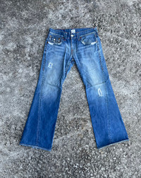 KINDLY PLEASE READ ALL THE DESCRIPTION BEFORE PURCHASING!!!..DON'T HESITATE TO ASK ANY QUESTION: Brand Name: True Religion Material: 100%cotton Tag Size: 32 Kindly see the actual measurements: (All Measurements Were Taken Lying flat) WAIST :- 17’’ Inches (34”inches) LENGTH (OUTSEAM ) :- 40”inches ( INSEAM ) :-31”inches THIGH :-12.5” Inches( 25“ Inches) FRONT RISE:-9.5”Inches LEG OPENING :- 10” inches(20” inches) KNEE:9” inches (18”inches) CONDITIONS : GOOD CONDITIONS Condition as per picture Kindly see all pictures Thank you so much for your visit PLEASE LEAVE YOUR PHONE NUMBER ON THE NOTE WHILE MAKE A PURCHASE AND PLEASE MAKE SURE YOUR ADDRESS IS COMPLETE AND CORRECT Etc: # Don't Worry About Customs Tax or Fees. I usually Declare all Items as 'Gift' & Declare Value of Item Lower than Original Price. # All Items are Sold "AS IS" so Please be Sure to Read The Entire Description and Look at All The Pictures. # Any Question and More Details Please Don't Hesitate to Contact Me ATTENTION: Please pay close attention to measurements provided. Do not rely on tag size as pre-worn items may have been altered, stretched or shrunk & vintage sizes do not directly translate the modern sizes.The best way to ensure a correct fit is to compare our measurements with the measurements of a similar item that you know fits you well.Please enlarge the photos for clearer image CODE:J03