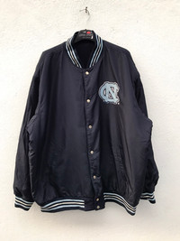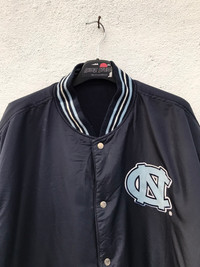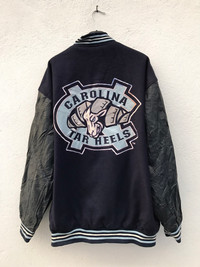KINDLY PLEASE READ ALL THE DESCRIPTION BEFORE PURCHASING!!!..DON'T HESITATE TO ASK ANY QUESTION: Please leave me your contact phone number, as the shipping company always need the phone number to help delivering. North Carolina Tar Heels BIG LOGO LEATHER SLEEVE Reversible VARSITY JACKETS Tag Size:4X MATERIAL:LEATHER ,Wool ,Acrylic Kindly see the actual measurements: (All Measurements Were Taken Lying flat) underarm to underarm (across front) : 31inches top to bottom length (from top collar fold) :32Inches Shoulder to Shoulder:25inches Shoulder to Wrist:28inches CONDITIONS : GOOD CONDITIONS(used Conditions) Kindly see all pictures Thank you so much for your visit WE ARE USING EXPRESS SHIPPING, IT TAKES 3-5 DAYS ONLY TO ARRIVE. PLEASE LEAVE YOUR PHONE NUMBER ON THE NOTE WHILE MAKE A PURCHASE AND PLEASE MAKE SURE YOUR ADDRESS IS COMPLETE AND CORRECT Etc: # Don't Worry About Customs Tax or Fees. I usually Declare all Items as 'Gift' & Declare Value of Item Lower than Original Price. # All Items are Sold "AS IS" so Please be Sure to Read The Entire Description and Look at All The Pictures. # Any Question and More Details Please Don't Hesitate to Contact Me ATTENTION: Please pay close attention to measurements provided. Do not rely on tag size as pre-worn items may have been altered, stretched or shrunk & vintage sizes do not directly translate the modern sizes.The best way to ensure a correct fit is to compare our measurements with the measurements of a similar item that you know fits you well.Please enlarge the photos for clearer image