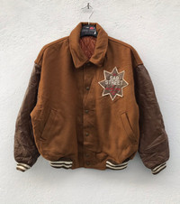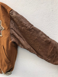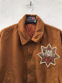 KINDLY PLEASE READ ALL THE DESCRIPTION BEFORE PURCHASING!!!..DON'T HESITATE TO ASK ANY QUESTION: Please leave me your contact phone number, as the shipping company always need the phone number to help delivering. SAB STREET BIG LOGO LEATHER SLEEVE QUILTED LINING VARSITY JACKETS Tag Size:NONE MATERIAL:LEATHER ,Wool, Kindly see the actual measurements: (All Measurements Were Taken Lying flat) underarm to underarm (across front) : 24inches top to bottom length (from top collar fold) :25Inches Shoulder to Shoulder:22inches Shoulder to Wrist:20inches CONDITIONS : GOOD CONDITIONS(used Conditions) Kindly see all pictures Thank you so much for your visit WE ARE USING EXPRESS SHIPPING, IT TAKES 3-5 DAYS ONLY TO ARRIVE. PLEASE LEAVE YOUR PHONE NUMBER ON THE NOTE WHILE MAKE A PURCHASE AND PLEASE MAKE SURE YOUR ADDRESS IS COMPLETE AND CORRECT Etc: # Don't Worry About Customs Tax or Fees. I usually Declare all Items as 'Gift' & Declare Value of Item Lower than Original Price. # All Items are Sold "AS IS" so Please be Sure to Read The Entire Description and Look at All The Pictures. # Any Question and More Details Please Don't Hesitate to Contact Me ATTENTION: Please pay close attention to measurements provided. Do not rely on tag size as pre-worn items may have been altered, stretched or shrunk & vintage sizes do not directly translate the modern sizes.The best way to ensure a correct fit is to compare our measurements with the measurements of a similar item that you know fits you well.Please enlarge the photos for clearer image
