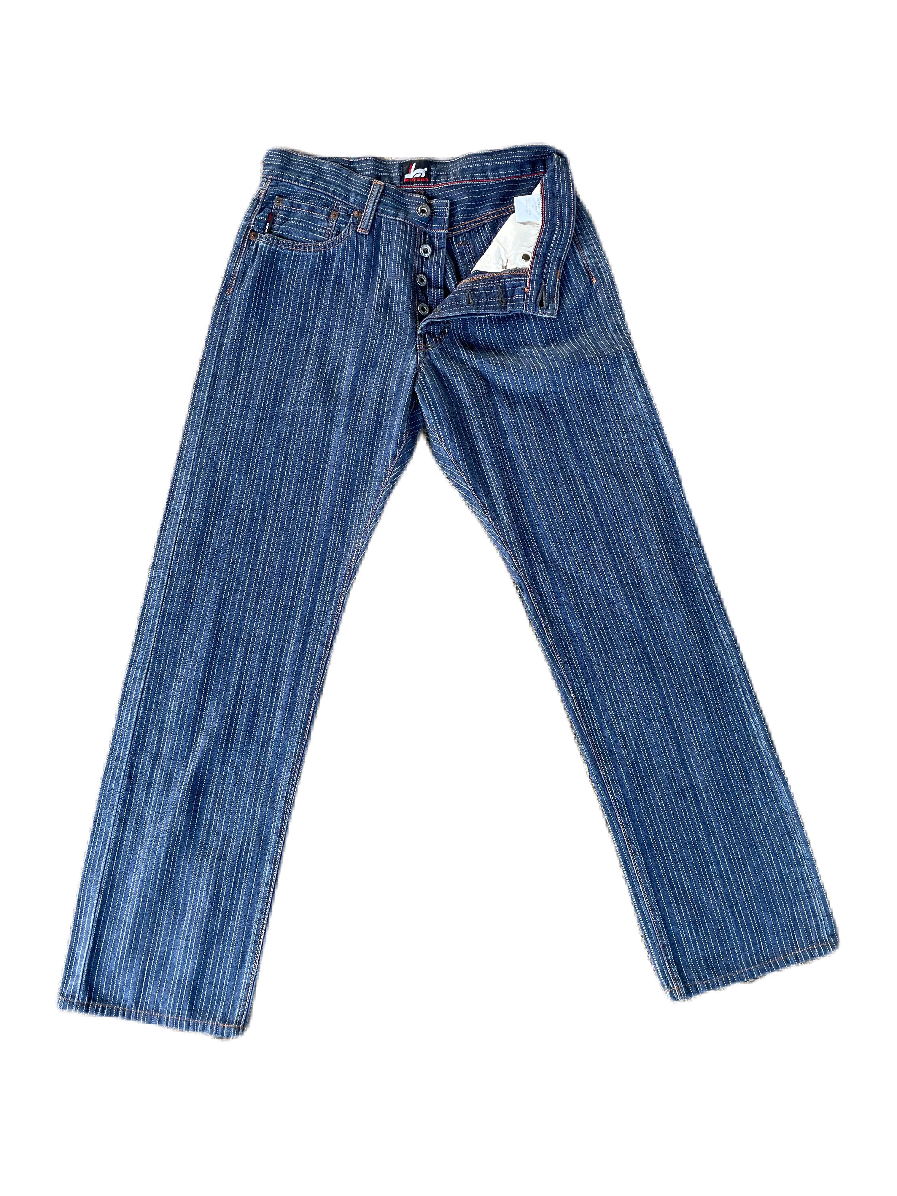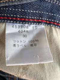 KINDLY PLEASE READ ALL THE DESCRIPTION BEFORE PURCHASING!!!..DON'T HESITATE TO ASK ANY QUESTION: Please leave me your contact phone number, as the shipping company always need the phone number to help delivering. Red Ear Pin Striped Jeans Made In Japan Tag Size :30 Made In Japan Kindly see the actual measurements: (All Measurements Were Taken Lying flat) WAIST :- 14.5inches (29inches) LENGTH (OUTSEAM ) :- 40 inches ( INSEAM ) :-29 inches THIGH :-12inches(24Inches) FRONT RISE:-10 Inches LEG OPENING :- 8inches(16inches) Knee:9 inches (18inches) CONDITIONS : Good CONDITIONS Kindly see all pictures Thank you so much for your visit Code: J04