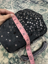 DIESEL SUEDE STUDDED HANDHELD CLUTCH BAG